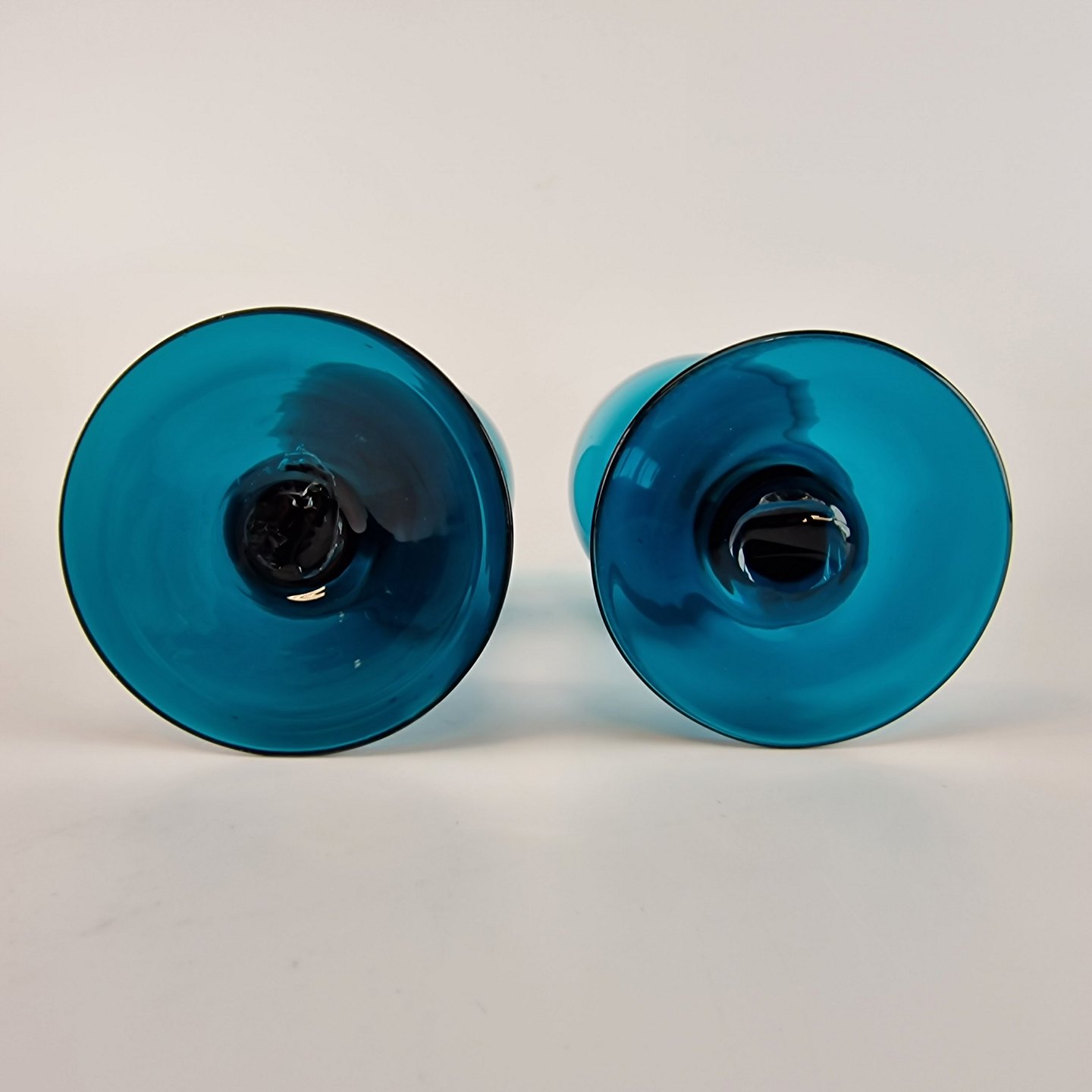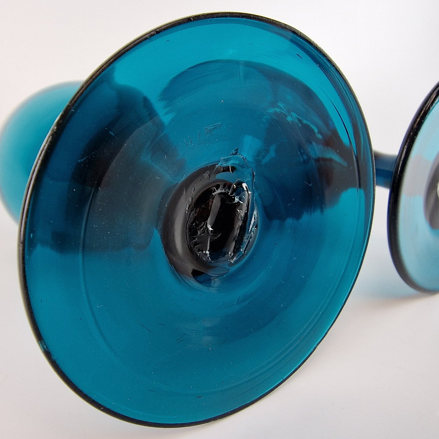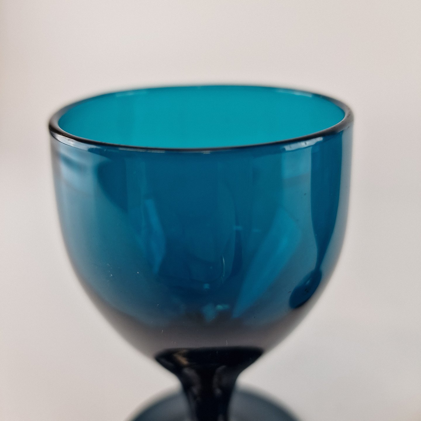 Vinglas af mundblæst tyrkis farvet glas.