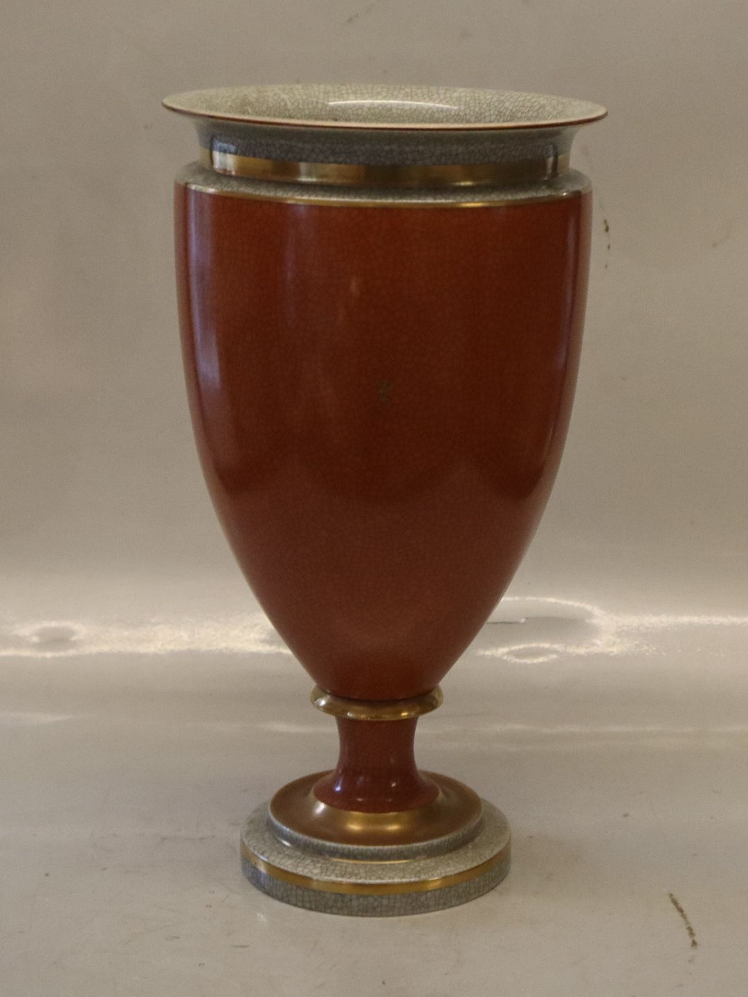 212-3377 Kgl. Pokal - Vase på fod orange & graa 30 x 16.5 cm Kongelig Dansk Craquelé, Craquele