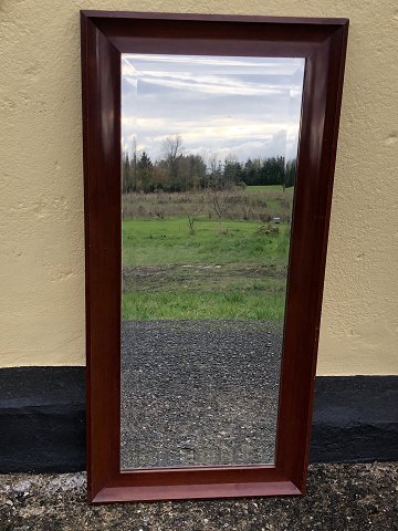 Older faceted mirror in a dark lacquered wooden frame. A little patina on glass and frame. Dimensions: 90x43 cm