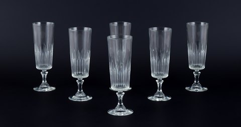 Et sæt på seks svenske champagnefløjter i klart glas. Facetslebet.