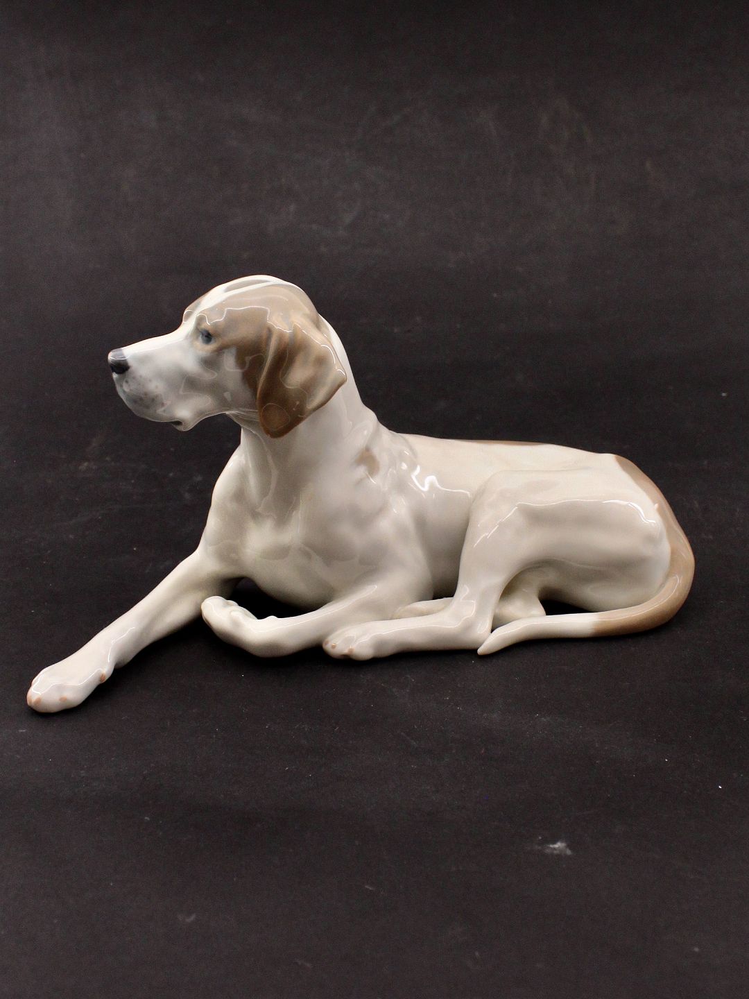 Royal Copenhagen Liggende Pointer 1635 L. 24 cm. H.13 cm.