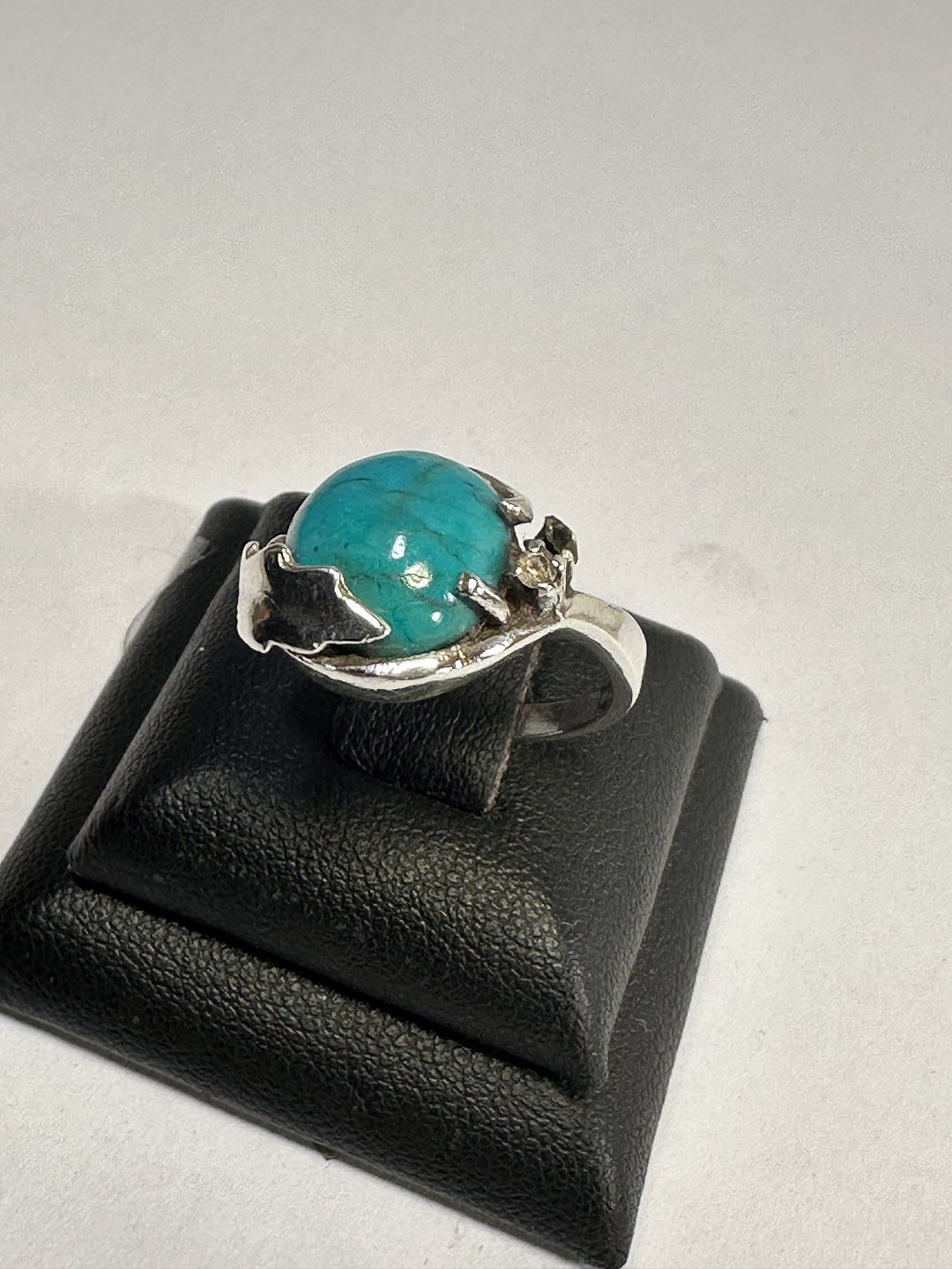 Vintage sterling silver finger ring with genuine turquoise size 56 A round turquoise stone in nice condition