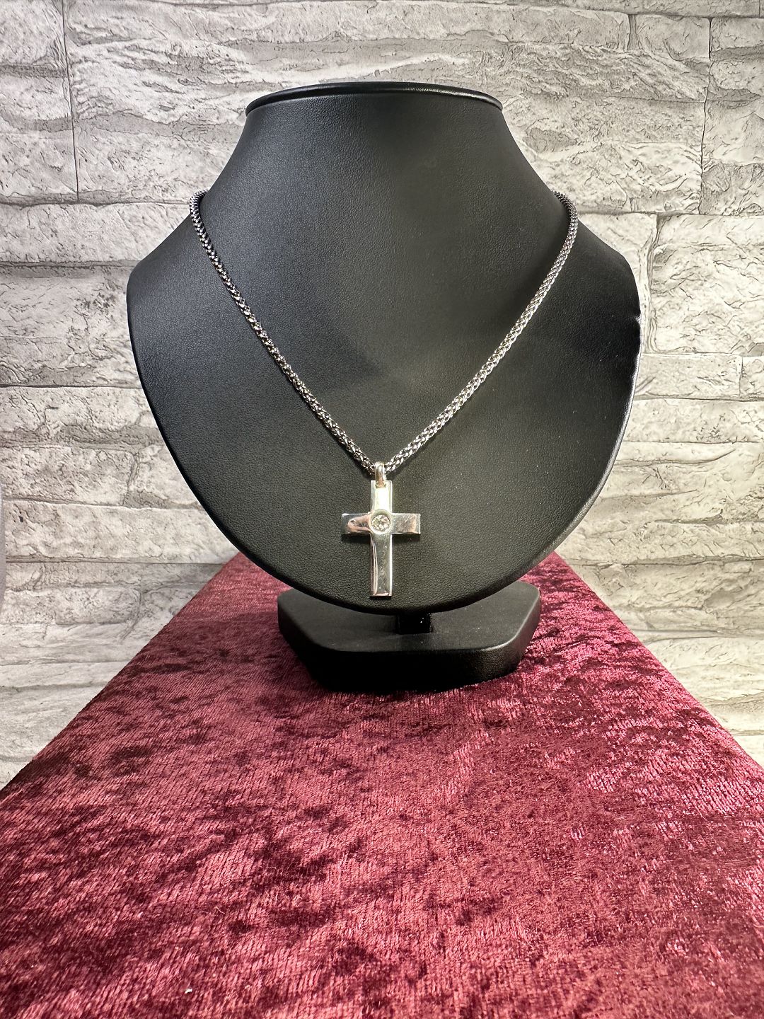 Sterling sølv unik halskæde sammen med unik kors i sølv 925s , kors har en stor Zirkon sten .