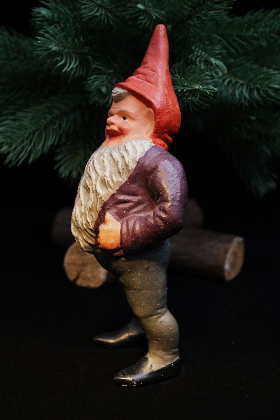 Gammel bemalet terrakotta julenisse med fin patina. Højde: 23,5 cm.