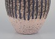 Mari Simmulson (1911-2000) for Upsala Ekeby, Sverige. Keramikvase i modernistisk stil. Dekoreret med mørkeblå striber på sandfarvet bund.