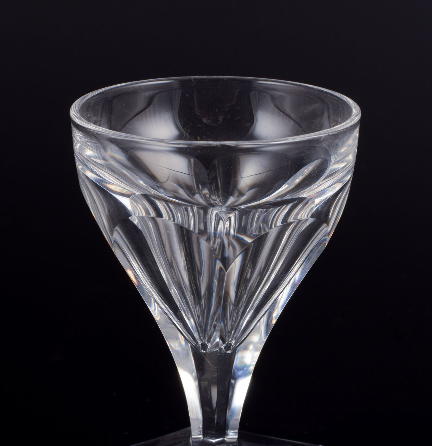 Baccarat, Frankrig, et sæt på seks Art Deco glas i klart krystal. Facetslebet.