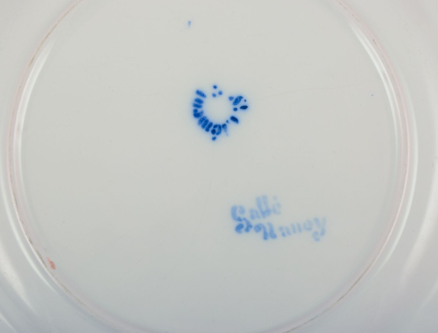 Emile Gallé for St. Clement, Nancy. Et sæt på seks middagstallerkner i håndmalet fajance. Dekoreret med våbenskjold.