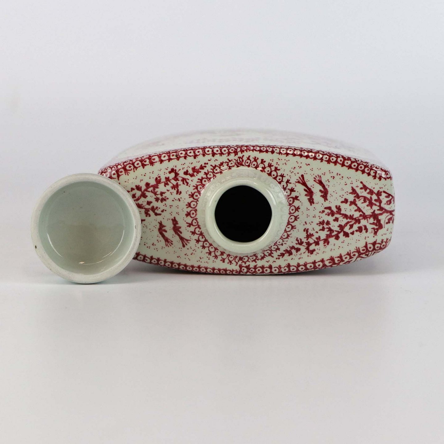 Firkantet porcelænsflaske med top i rød dekoration no 3180-302