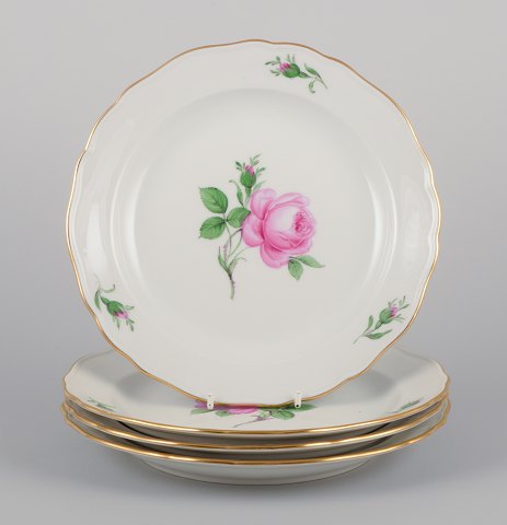 Meissen, Tyskland. Fire frokosttallerkner med motiv af lyserød rose.
