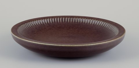 Stor keramikskål. Glasur i grønbrune nuancer.