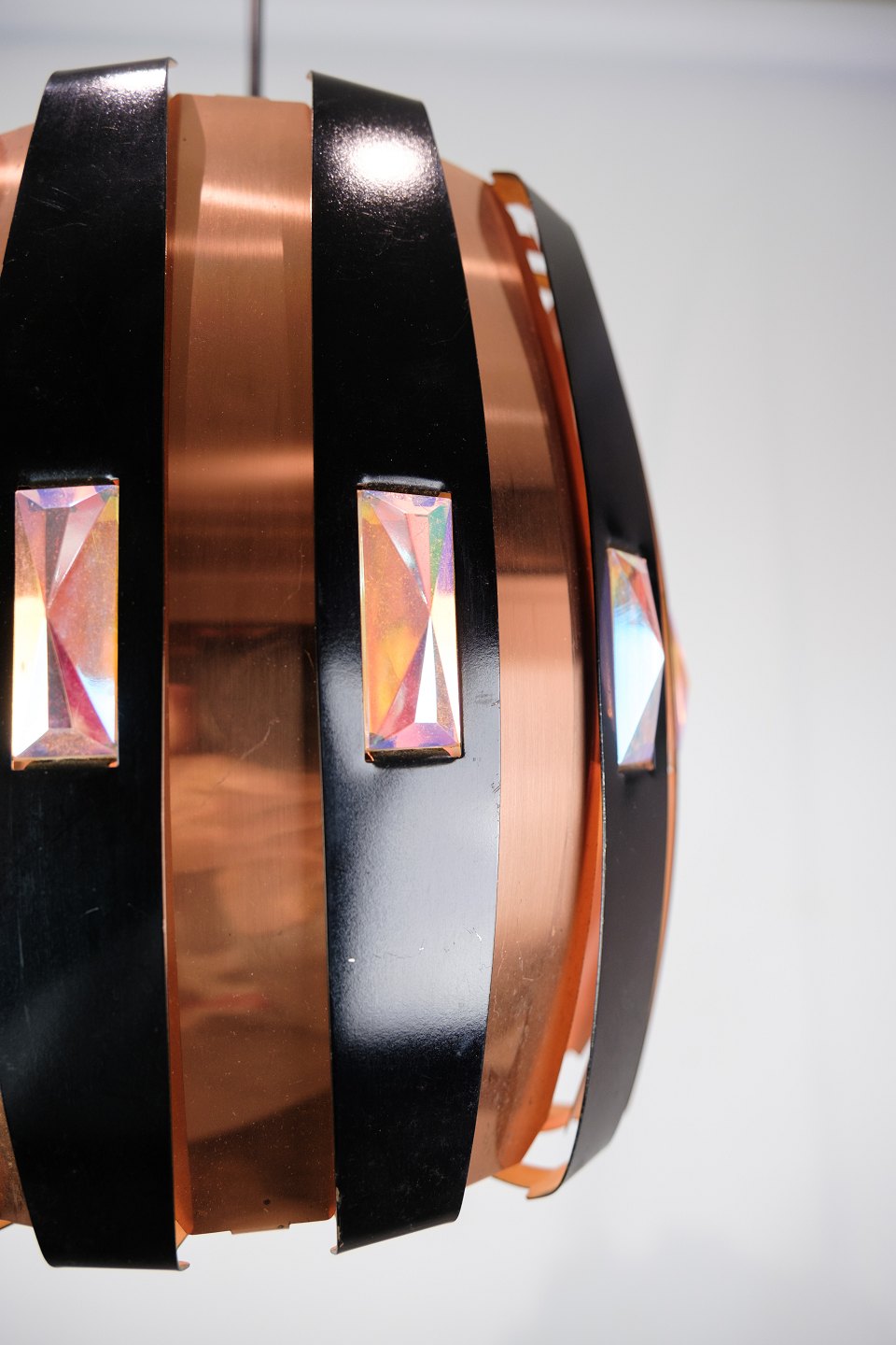 Loftlampe - Kobber - udsmykket med Krystaller - Werner Schou - Fremstillet af Coronell Elektro Danmark - 1970