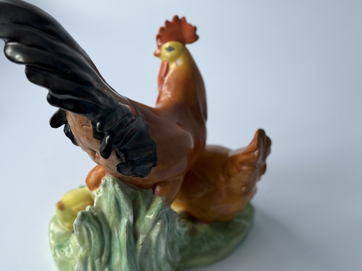 Gruppe med høne, hane og to kyllinger - påske figur af glaseret porcelæn.