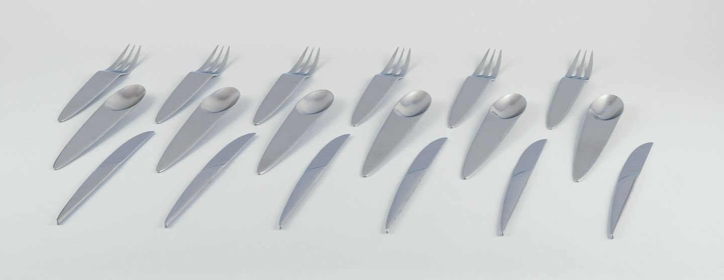 Middagsservice til seks personer bestående af seks middagsknive, seks middagsgafler og seks spiseskeer.