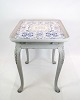Flisebordet i rokokostil, gråmalet og dateret til 1780, er et charmerende eksempel på klassisk møbeldesign. Dets elegant buede former og forfinet detaljering er karakteristiske for perioden og tilføjer en historisk charme til ethvert rum. Dette tidløse møbelstykke er en smuk og funktionel tilføjelse til enhver indretning med sin unikke æstetik og historiske værdi.