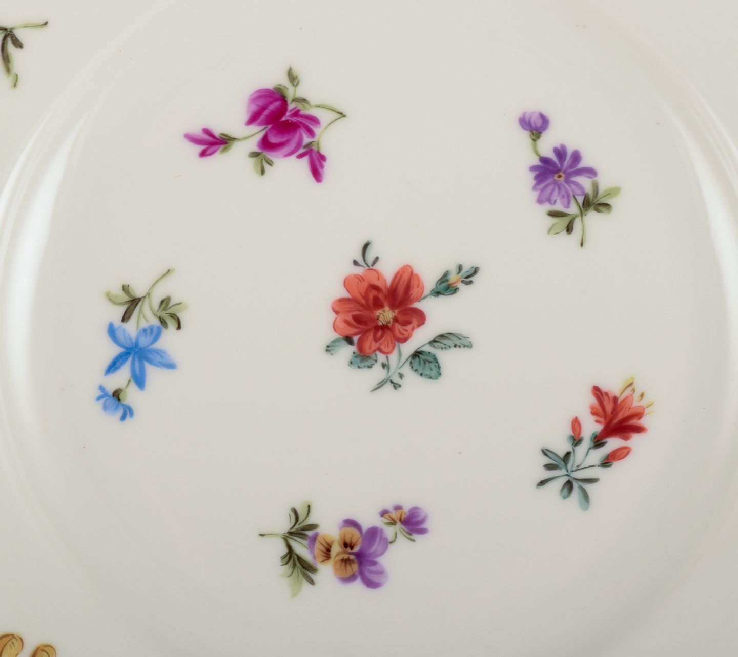 Håndmalet med blomstermotiver i polykrome farver, guldkant.