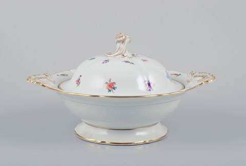 Håndmalet med polykrome blomstermotiver, guldkant.