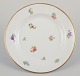 Seks små porcelænstallerkner. Håndmalet med polykrome blomstermotiver, guldkant.