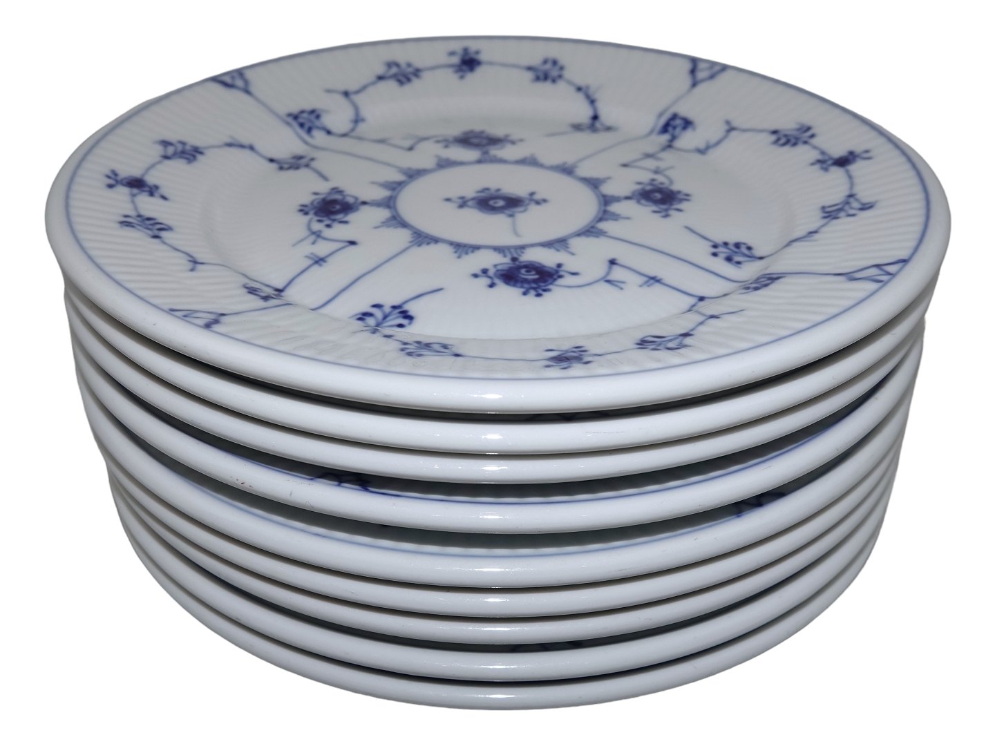 Royal Copenhagen Musselmalet Riflet jernporcelæn, frokosttallerken.