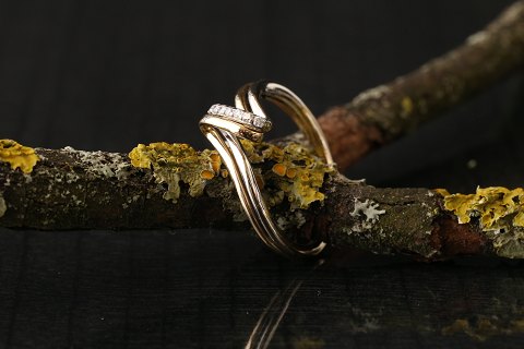 Damering udført i 14 karat rød- og hvidguld med enestående flot struktur. Ringens bløde linjer, kombineret med de indlagte diamanter, giver ringen et unikt udseende, der både er tidløst men også meget elegant. Brug ringen til hverdag eller fest, denne ring kan nemlig begge dele.