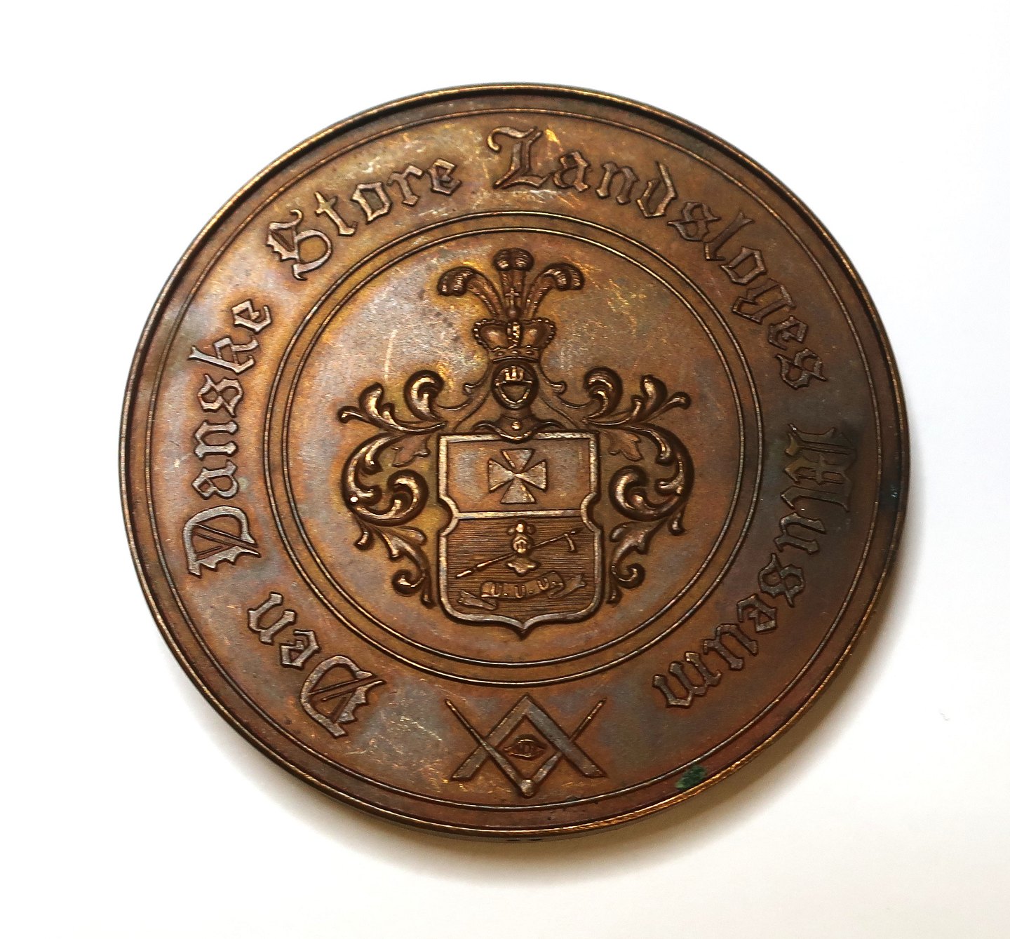 Bronze medalje. Tilegnet museet og br. Johs Rasmussen af venner og BRR. Den danske store Landsloges museum. Diameter 54 mm