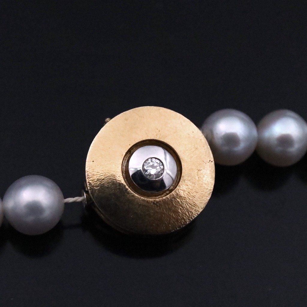 Ole Lynggaard. Pearl Necklace with 14k Gold Clasp with Diamond and Sapphire.