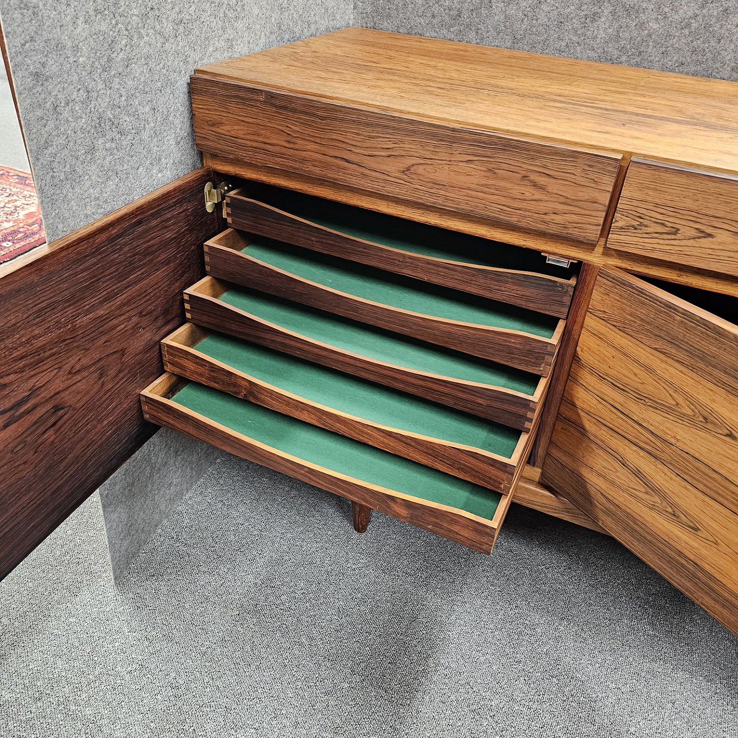 Fritstående skænk i lakeret palisander med 4 låger og 4 skuffer. Model FA-66