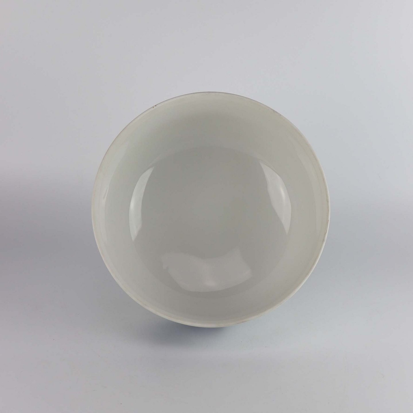 Kartoffelskål i glat hvidt porcelæn med abstrakt mønster i blå nuancer