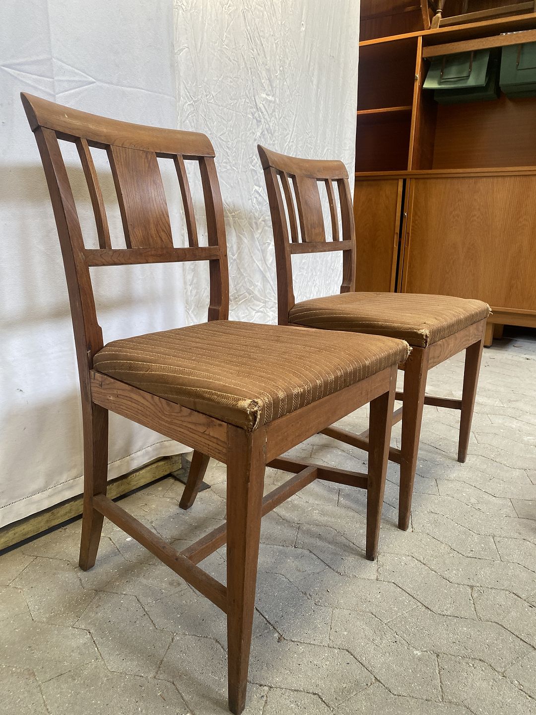 2 stole i mahogni fremstår med brugsspor specielt i sæde