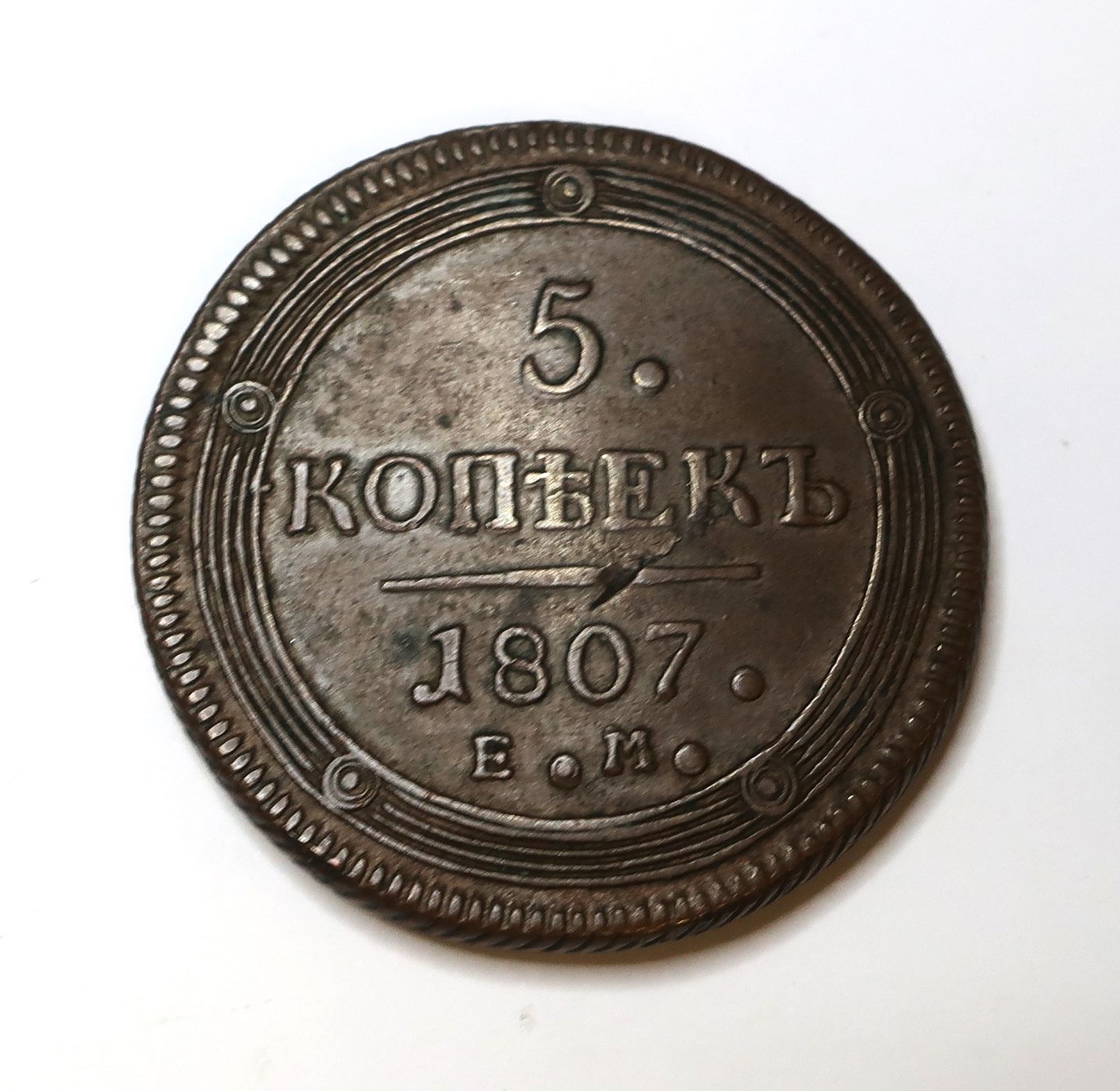 Rusland. Kobber 5 kopek fra 1807.