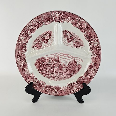 Tredelt tallerken fra det engelske stel Rød Paris (Enoch wood's, English scenery)