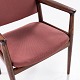 JH 713 - Armstol i mørkbejdset eg og originalt, rødt tekstil.