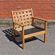Lænestol med stel i lakeret egetræ med hynder betrukket i bordeaux rød uldstof
