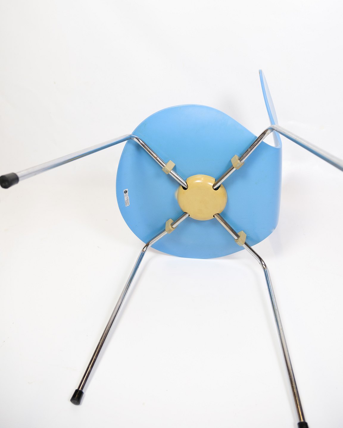 Sæt Af 5 Spisebordsstole - Model 3107 - Syver Stol - Lakeret I Lyseblå - Arne Jacobsen - Fritz Hansen - 1980erne
