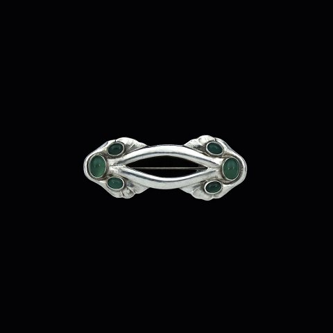 Georg Jensen. Sterling Silver Brooch #86 with Green Agates. 1915-19 Hallmarks.