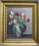 Vermehren, Yelva (1878 - 1980) Danmark: Opstilling med tulipaner i en krukke. Olie på lærred. Signeret. 46 x 38 cm.