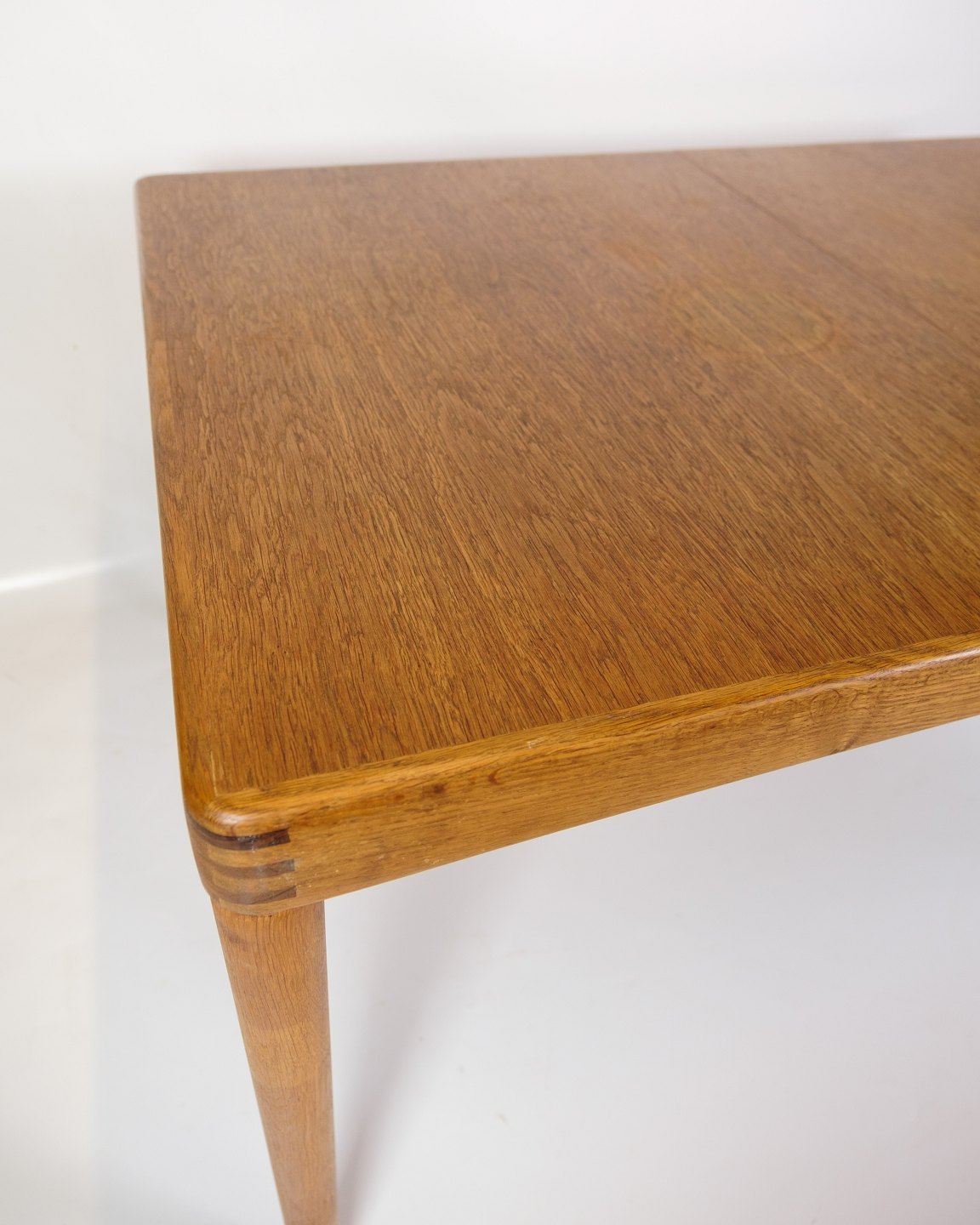 Spisebord i egetræ med tappede samlinger, designet af Henry W. Klein og produceret af Bramin i 1960'erne. Bordet er udført i solidt egetræ og har tappede samlinger, der sikrer både stabilitet og holdbarhed, samtidig med at de udtrykker håndværkets kvalitet og opmærksomhed på detaljer.