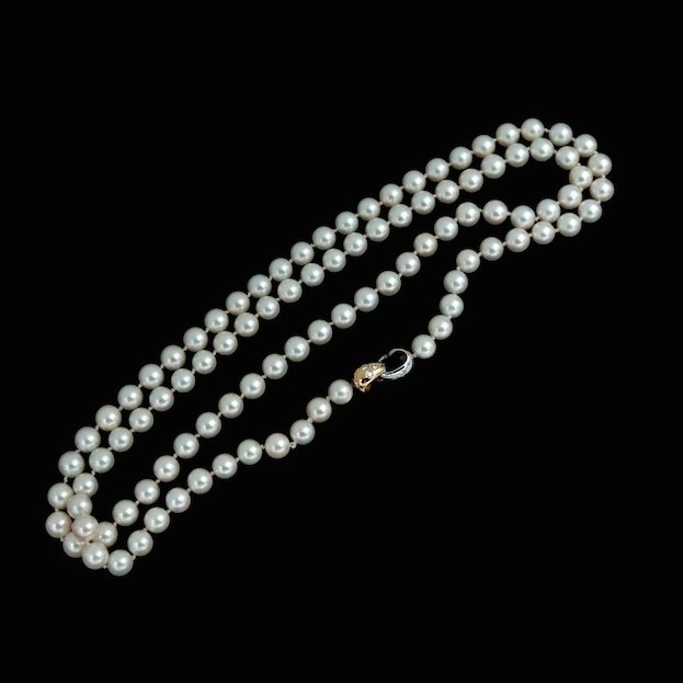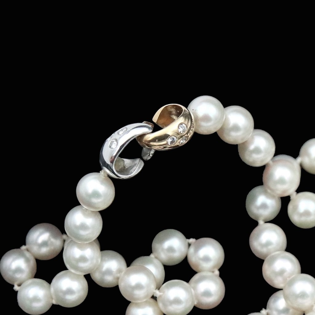 Georg Jensen. Unika perlekæde med lås i 18k hvid- og gulguld med brillanter.