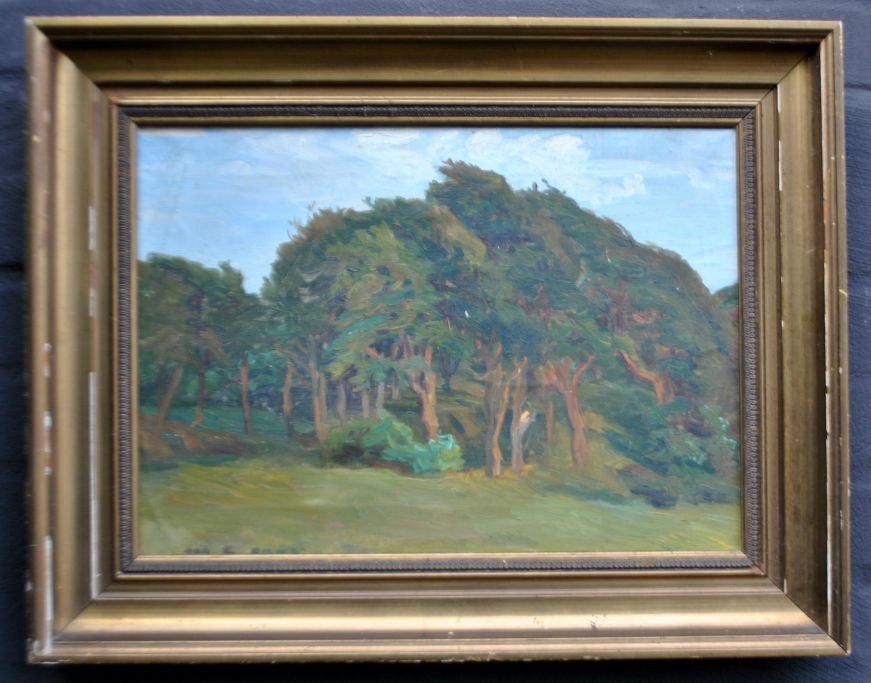 Sandholt, Marie (1872 - 1942) Denmark: From Tidsvilde. Oil on canvas. Signed: MS 1905. Motif from Tidsvilde Hegn. H: 30 cm. W: 42 cm.