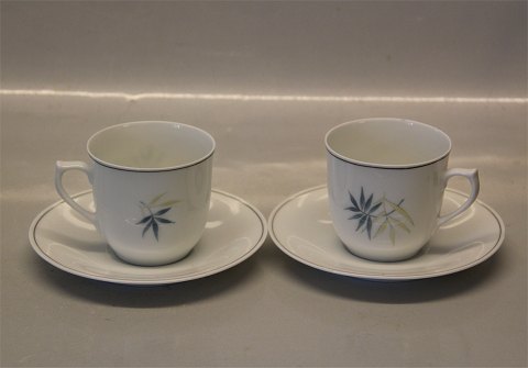 Hvidt porcelæn, blå og guldgrønne blade, form 676 Design Ebbe Sadolin
