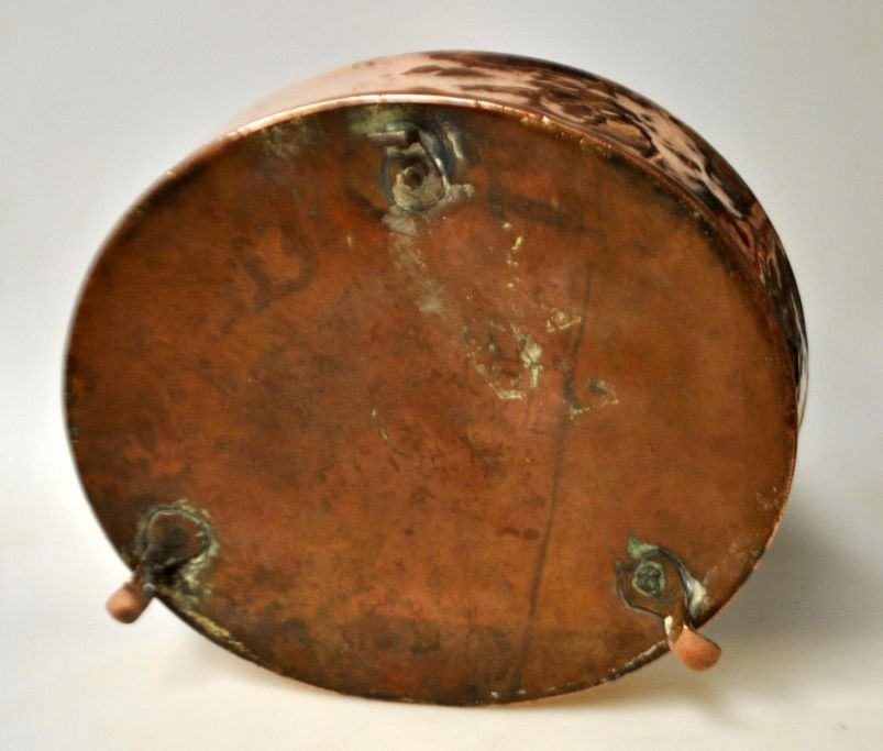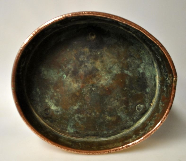 Antik kobberform, oval, på tre ben, 19. årh. Danmark. 26 x 23 x 7,5 cm.