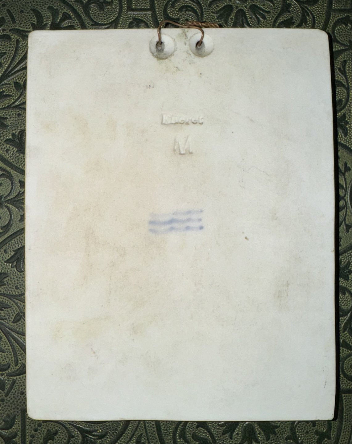 Firkantet platte i porcelæn bisquit fra Royal Copenhagen. Bertel Thorvaldsen (1770-1844) motiv med KRISTI DÅB. Efter relief modelleret i Rom i 1805-07 til døbefont. Denne platte er fremstillet på fabrikken i slutningen af 19. århundrede. I god stand uden skader eller reparationer. Mål: 12 x 15,5 cm