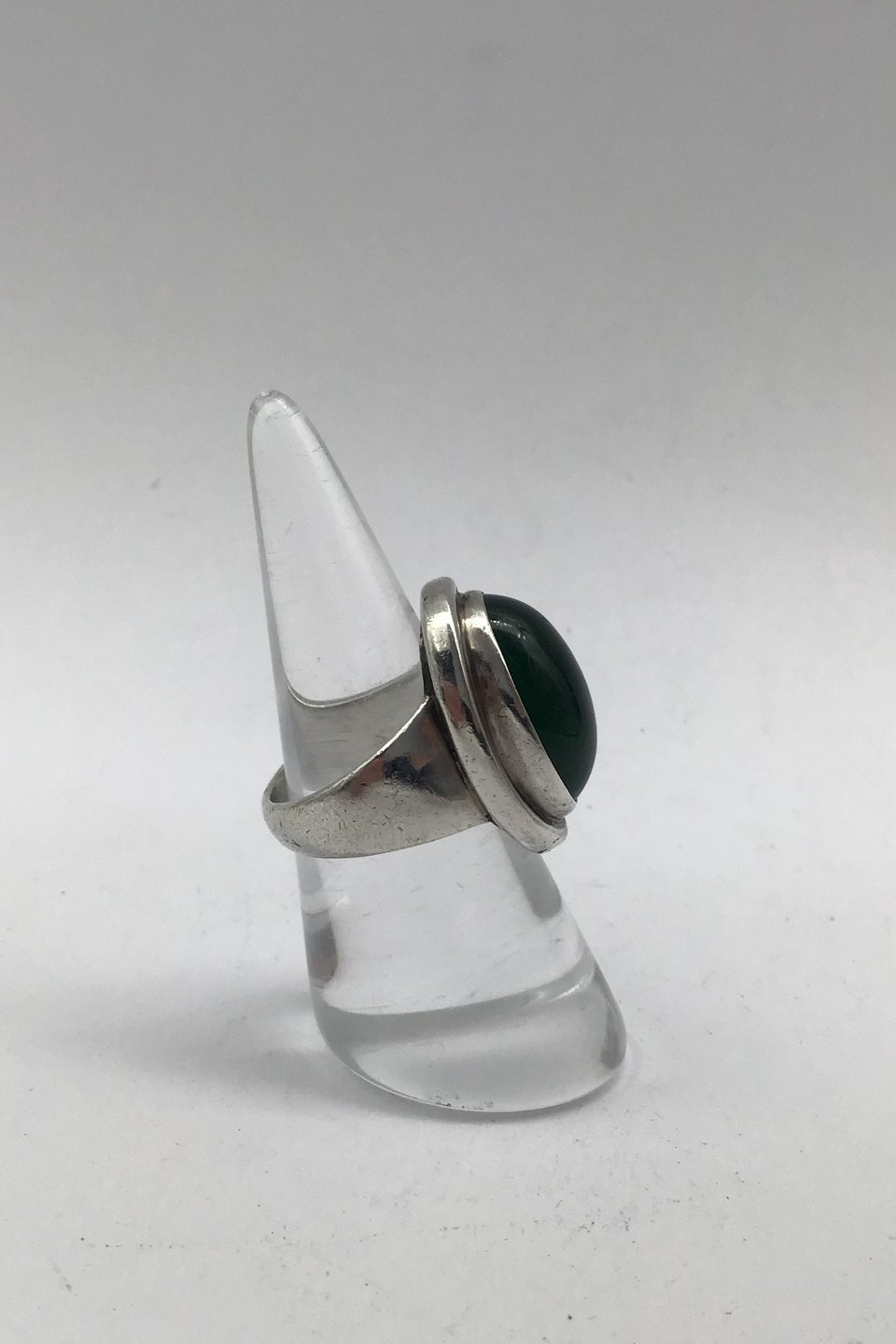Georg Jensen Sterling Sølv Ring No 46A (Grøn Agat) Måler Ring Str. 50 (US 5 1/4) Vægt 9.79 gr (0.34 oz) (Afslag på sten)