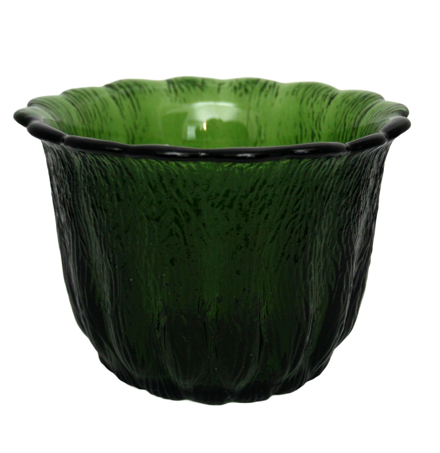 Holmegaard, SW serien, Urtepotteskjuler i grøn med tunget kant. Designet af Sidse Werner i 1981. Højde ca. 11 cm. Diameter ca. 16 cm. Pris: 250 kr. stk. Lager: 2