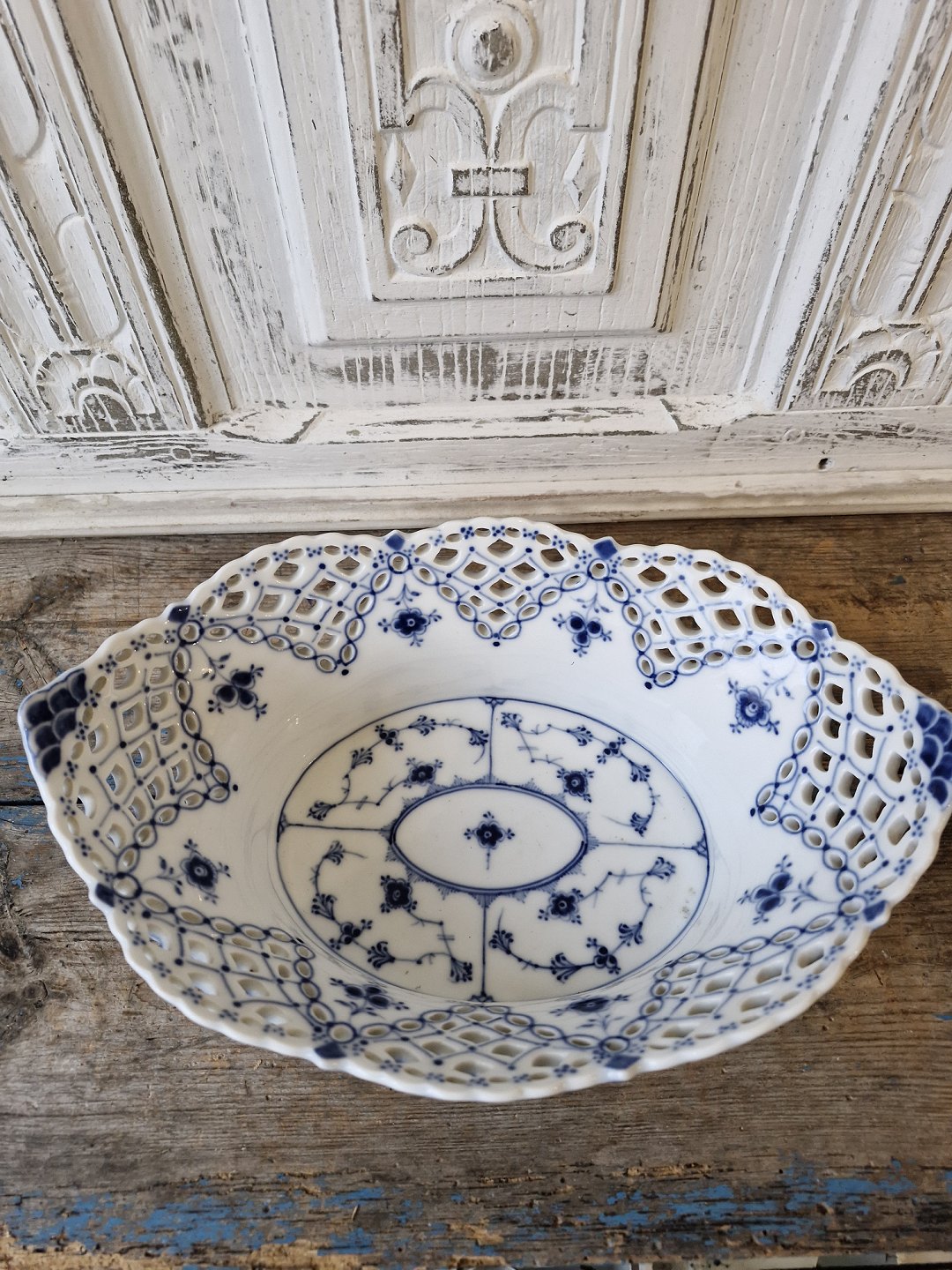 Royal Copenhagen Musselmalet helblonde oval frugtkurv no. 1059