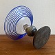 Sugar bowl of clear glass with a blue spiral around it. circa 1860. Painted stem and foot. Half of the stem is made of glass, the last part of the stem and foot is made of wood. H. 9.7 cm. Diameter 11.2 cm.