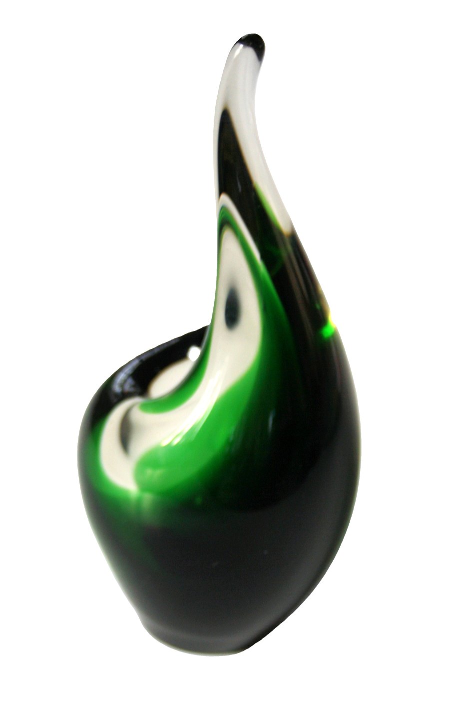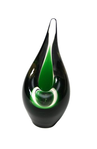 Holmegaard, Flamingo serien, Orkidévase i grønt og klart glas. Designet af Per Lütken i 1957. Signeret Holmegaard, 19PL57. Højde 15,5 cm. Flot stand. Pris: 375 kr.