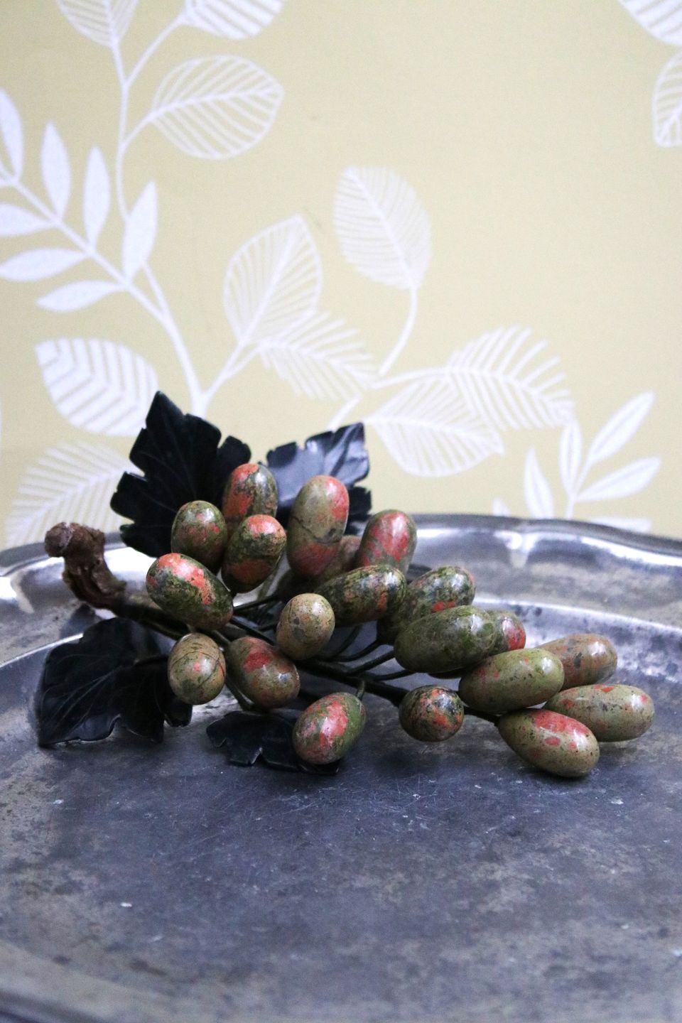 Dekorativ , gammel vindrueklase i farvet jade. Længde: 18cm.