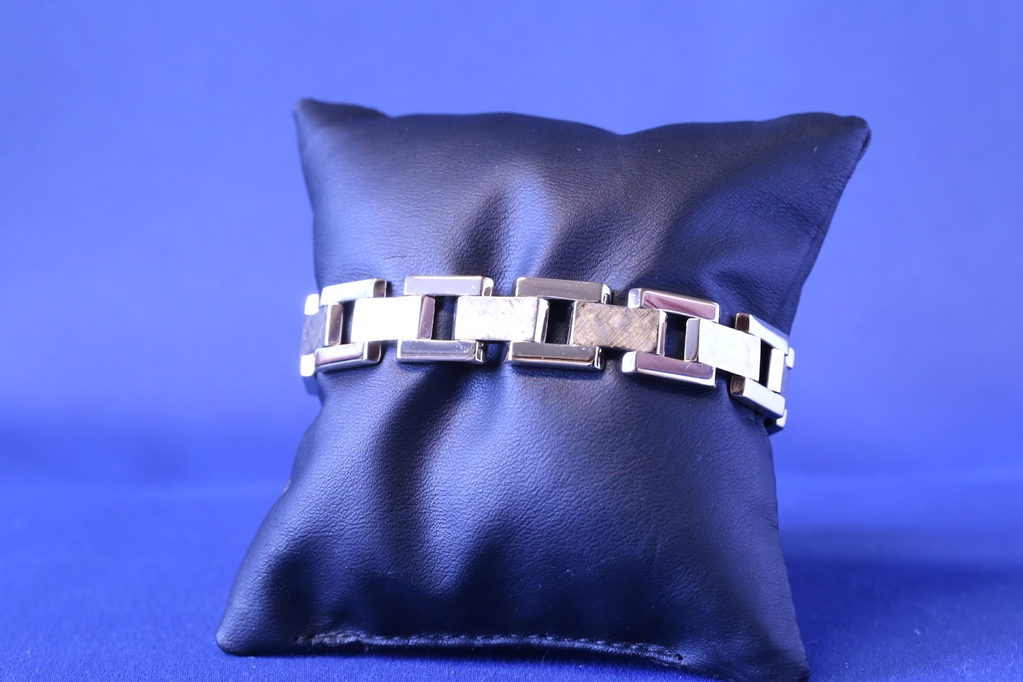 Beautiful Blok gold bracelet with 3 rows and engravings in the middle row. This gives the bracelet a great contrast and dynamism. Therefore, the bracelet is a very beautiful piece of jewelry that can be used especially for festive occasions.