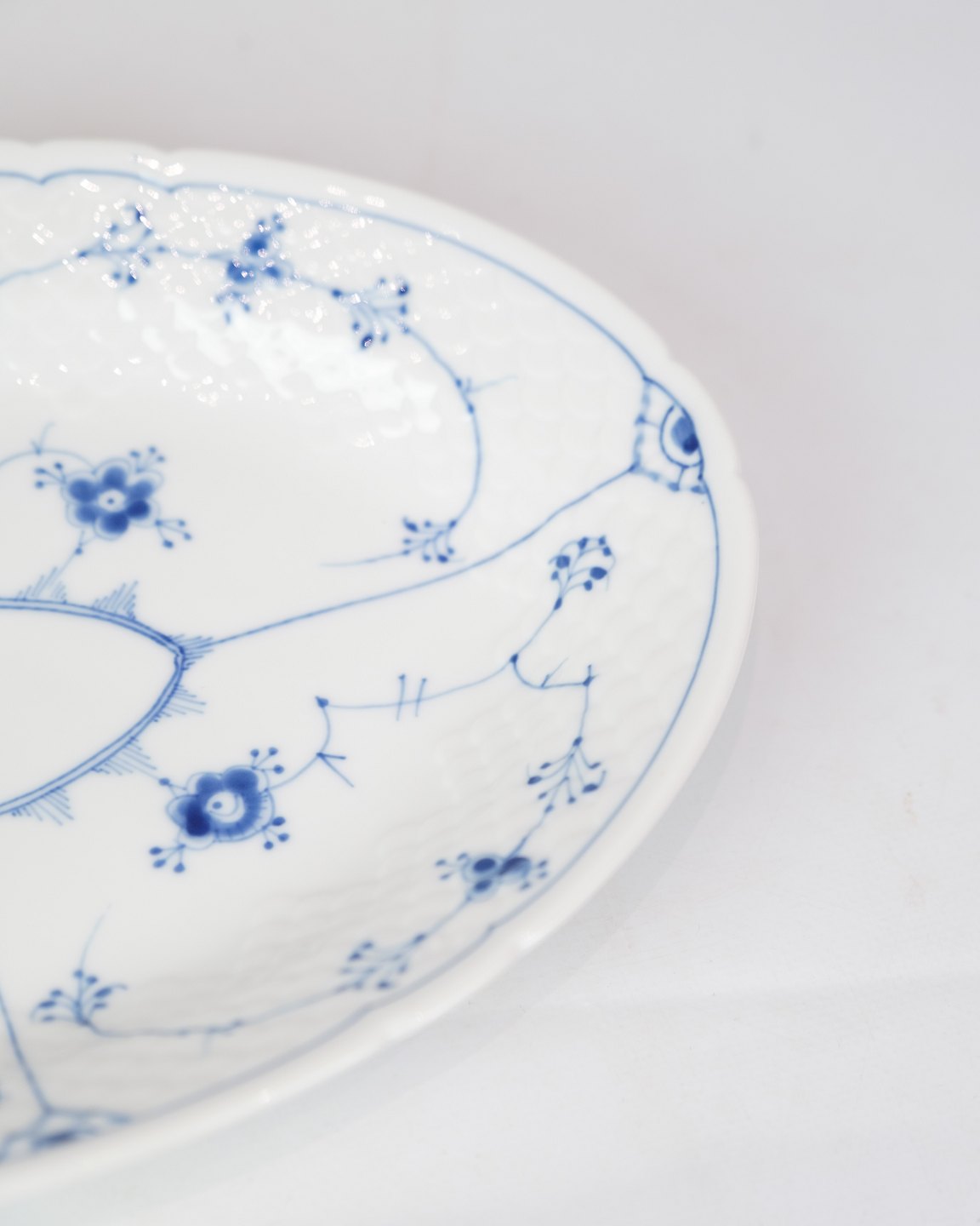 Ovalt fad nr. 17 fra Bing & Grøndahl. Fremstillet i porcelæn med klassisk musselmalet design i håndmalet blå dekoration.