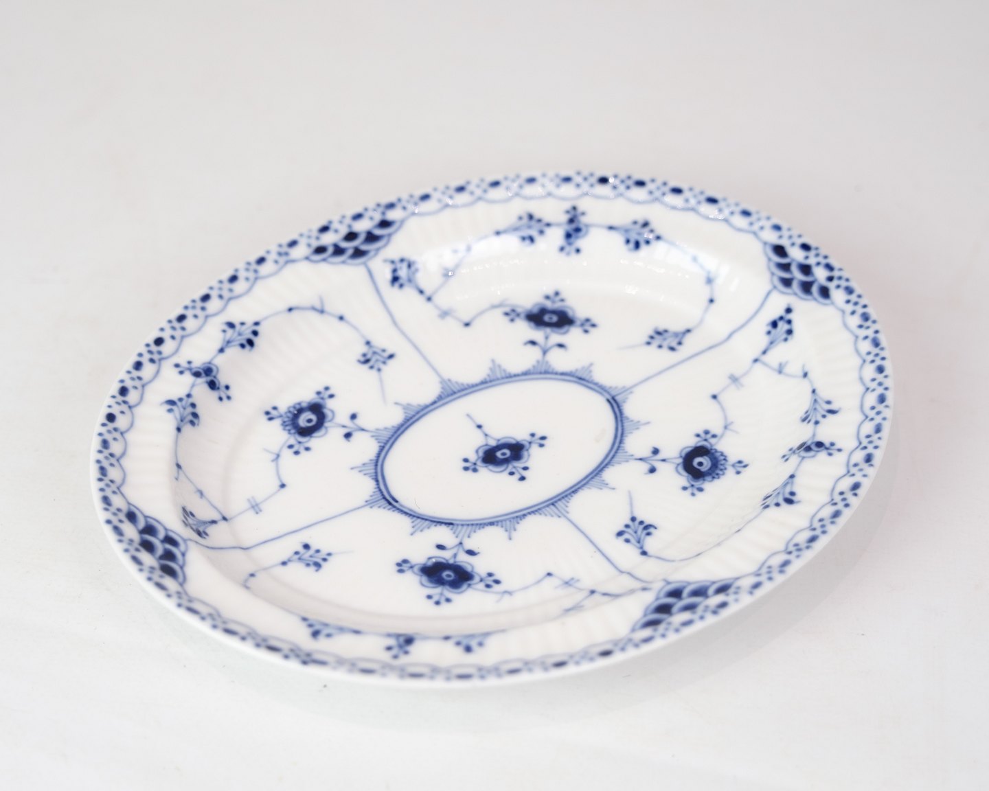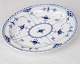 Ovalt fad mærket 1/750 fra Royal Copenhagen. Fremstillet i porcelæn med klassisk musselmalet halvblonde design. Håndmalet i blå dekoration.